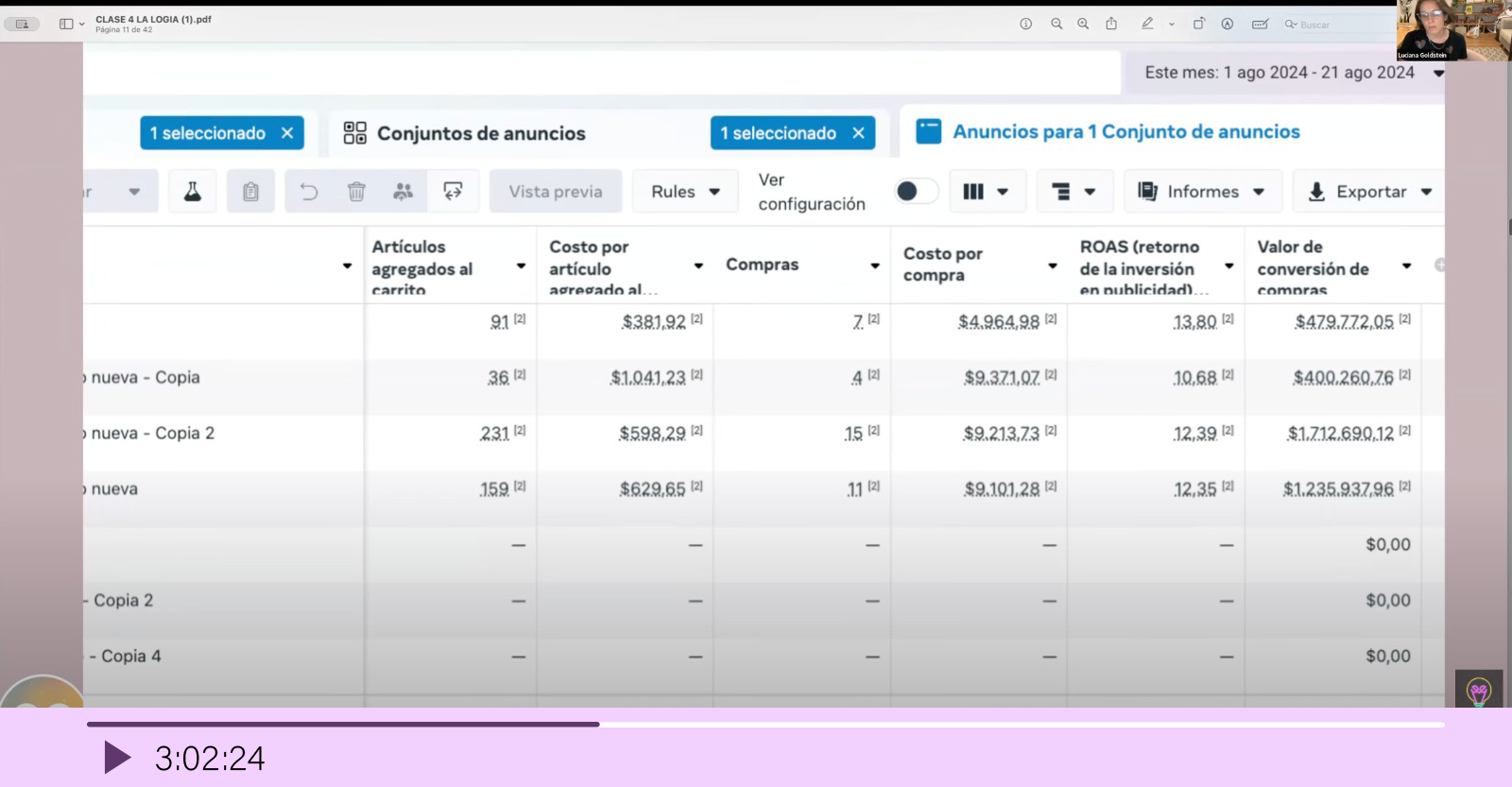 - Analizá campañas reales: Revisamos ejemplos de alumnos con este tipo de objetivos para mejorar la comprensión y análisis de indicadores clave.